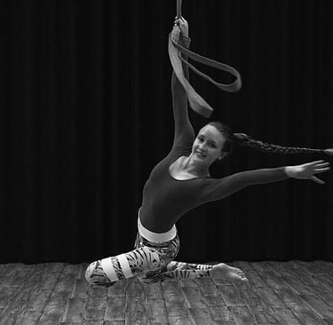 Raumhöhe mind. 5 Meter (für Luftring und Trapez) und mind. 6 Meter für Vertikaltuch